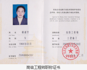 郝淑軍:1968年2月生,1990年7月畢業(yè)于河北工學院公路與城市道路工程專業(yè),本科學歷,高級工程師,全國注冊監(jiān)理工程師,全國注冊造價工程師,人民防空工程監(jiān)理工程師,全國環(huán)境監(jiān)理工程師,全國注冊安全工程師,項目管理師,主管總工程師辦公室。